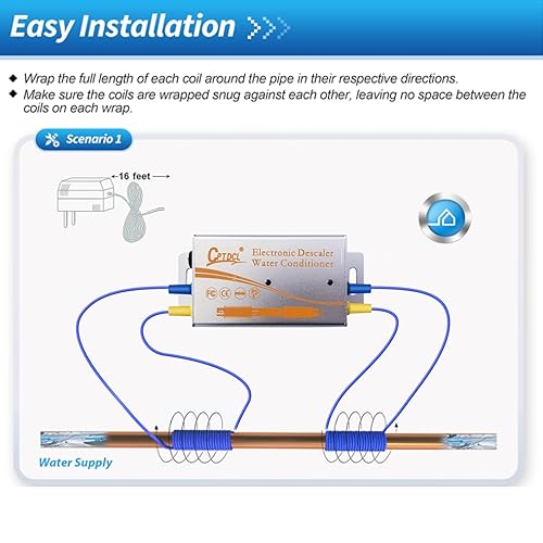 Sistema disincrostante elettronico dell'acqua, disincrostante senza sale, condizionatore di acqua dura per ridurre l'accumulo di incrostazioni, per tutti i tipi di tubi idraulici (Argento)