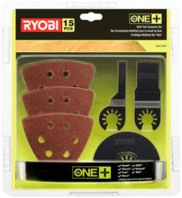 Confezione RYOBI Utensile multifunzione RMT300-SA - 300W - borsa di trasporto - kit legno speciale 15 pezzi - RAK15MT