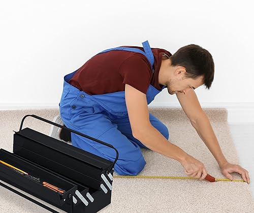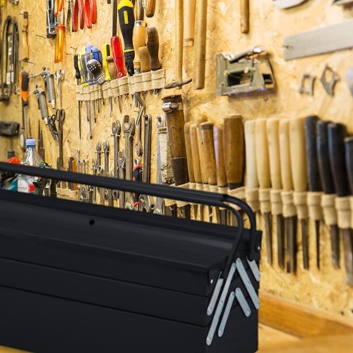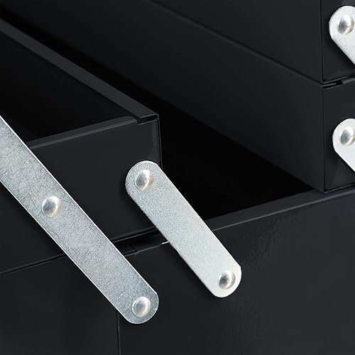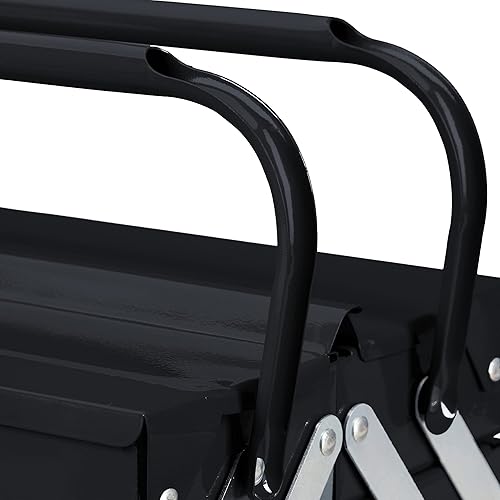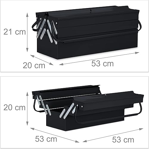 Relaxdays Cassetta Porta Attrezzi Vuota, 5 Scomparti, con Manici, in Metallo, Richiudibile, HLP: 21 x 53 x 20 cm, Nero