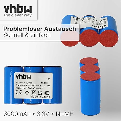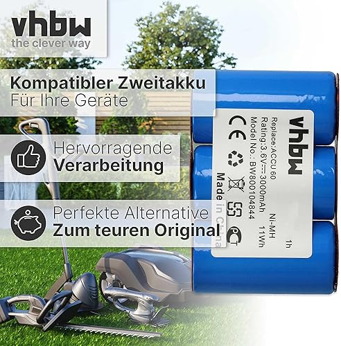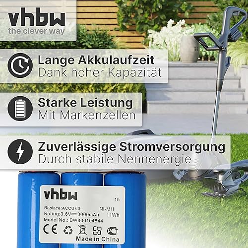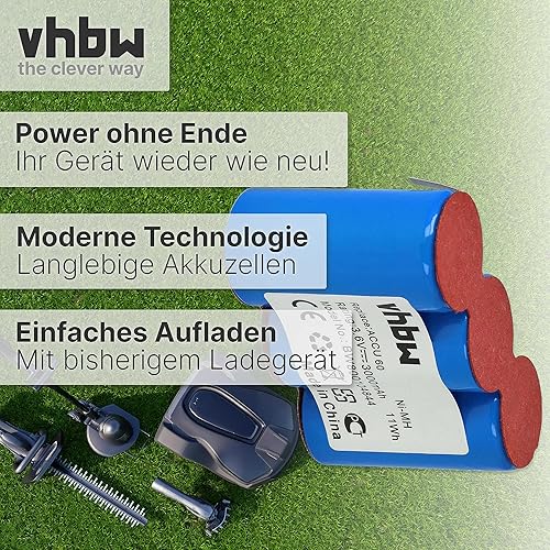 batteria compatibile con tosaerba Gardena Accu 45 (8808), Accu 60 (8800, 8810), Wolf RV-E6 7084889, Garne Vario RV-E6 - (NiMH, 3000mAh, 3.6V)