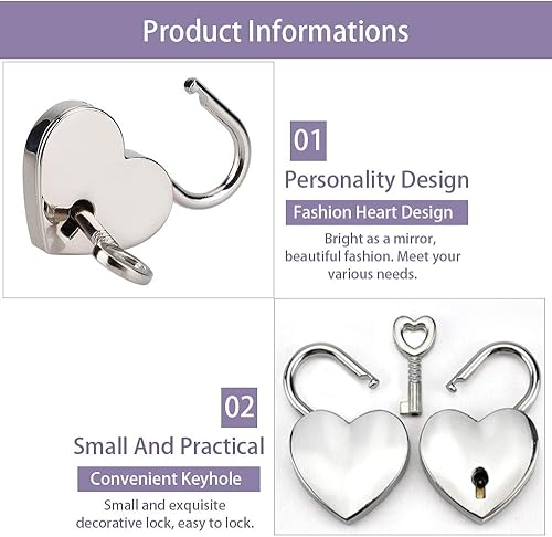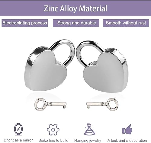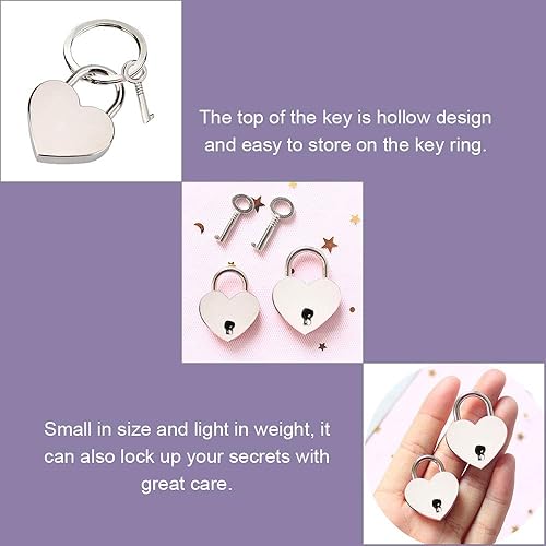 2 Pz Lucchetto a Forma di Cuore in Metallo Mini Con Chiave e Metallo Scheletrato per Portagioie, Scatole Portaoggetti, Diari (Argento)