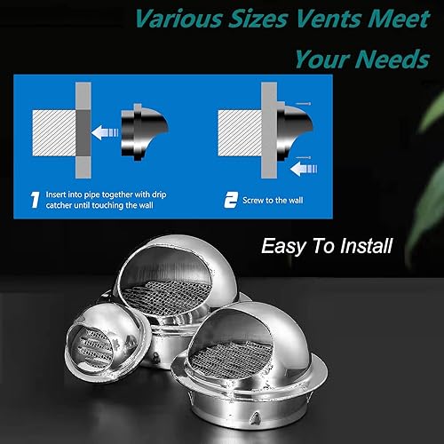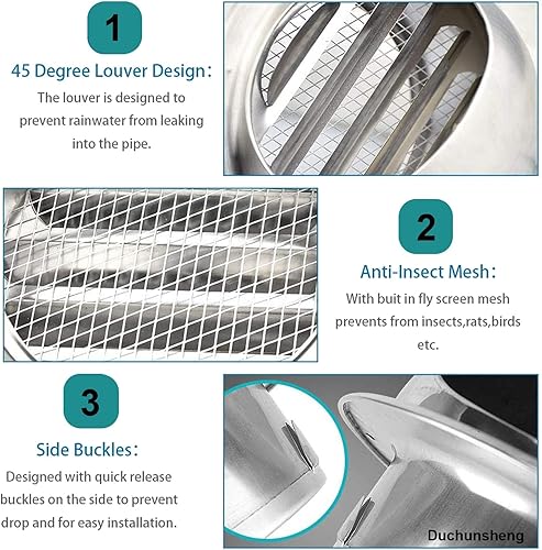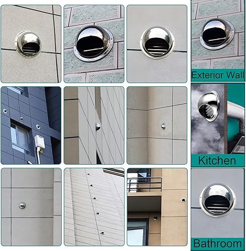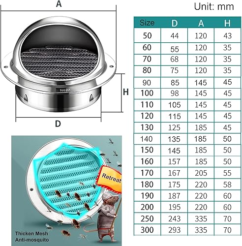 Griglia Aerazione, Griglia di Ventilazione in Acciaio Inox, Cappello Eolico Sfiato Esterno da 50-300mm, Ventilatore Sfiato con Agriglia A Lamelle A 45°, per Bagno Ufficio Cucina Fabbrica