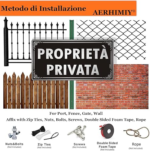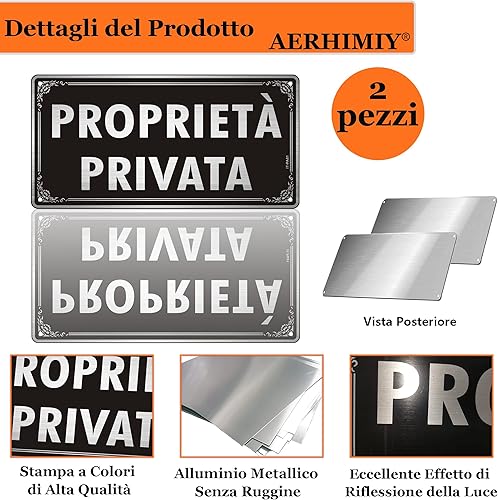 Cartello Proprietà Privata Alluminio Spazzolato 15x30 cm, Cartello Proprietà Privata Metallo Targhetta Proprietà Privata Protezione UV, Impermeabile, Antiruggine, Con fori