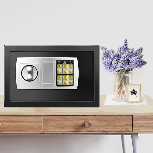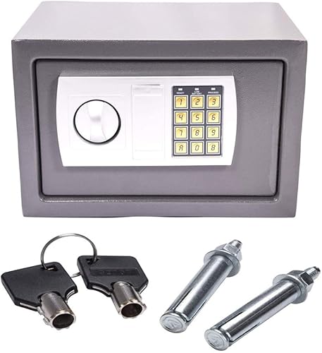 Cassaforte Hotel da 4,6L, Cassetta di Sicurezza Elettronica Digitale con PIN e 2 Chiavi, Cassaforte da Armadio Protezione di Denaro, Gioielli, Passaporti, 20x17x17cm, Grigio
