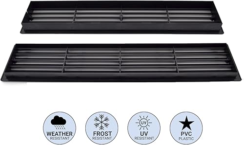 H&C VENT Griglia di ventilazione 457 x 92 mm Nero 2 lati PVC – HVAC – Copertura di ventilazione della porta – Sistema di alimentazione dell'aria quadrato in plastica elemento
