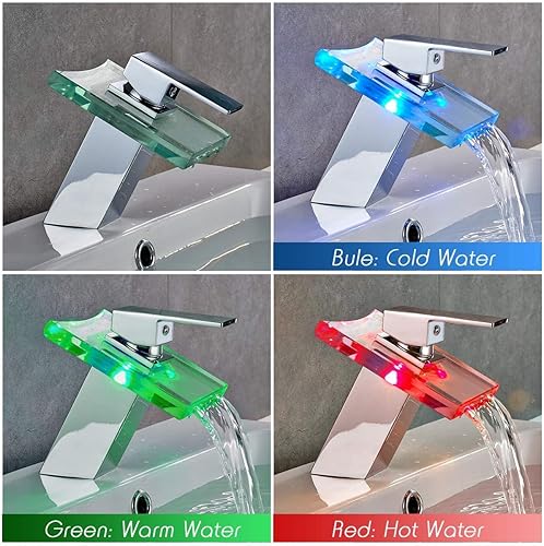 RGB LED Rubinetto di Vetro Elegante Cromata Cascata Bacino del Miscelatore e Bacino per Il Bagno Cucina