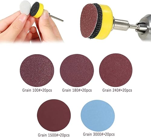 Kit da 25 mm, dischi abrasivi, 100 pezzi disco di levigatura grana 100 180 240 1500 3000 con tampone da 3 mm per utensili rotanti Dremel disco di levigatura per fresatura incisione rettifica