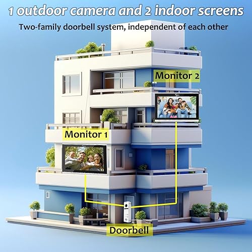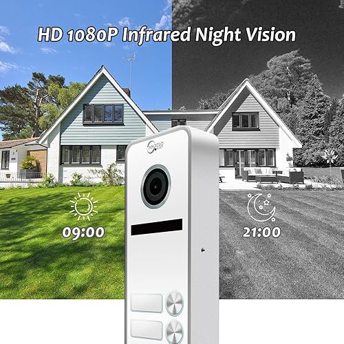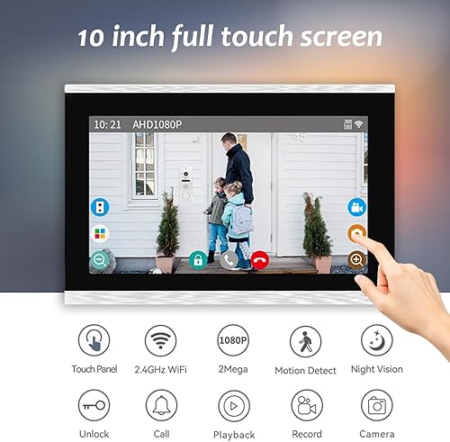 Videocitofono 1080P, campanello a 2 famiglie, display touchscreen da 10', supporto di sblocco, citofono bidirezionale, rilevamento del movimento (bianco)