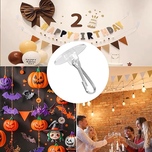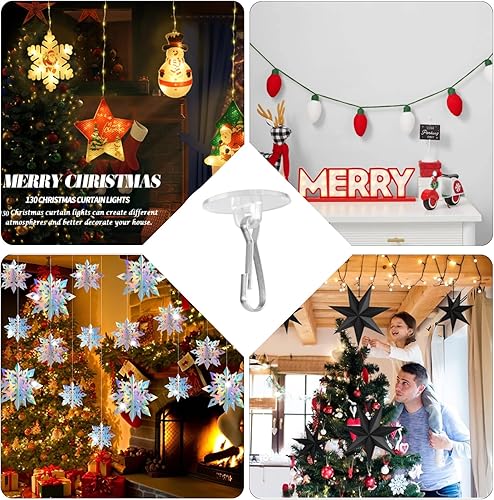 LANGNIDORIS Gancio Adesivo da Soffitto Autoadesivi Trasparenti da 30 Pezzi Senza Perforazione Ganci per Montaggio a Soffitto con Clip per Pennone Ganci Natalizia Decorativi per Camera da Letto Bagno