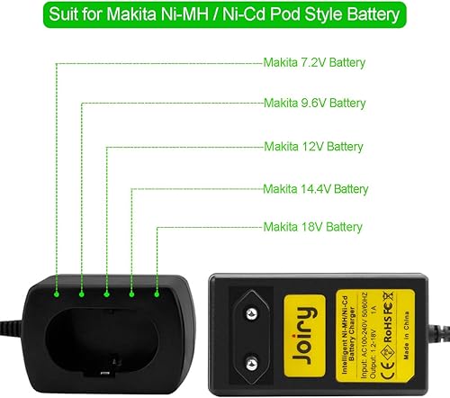 Joiry 1.2V-18V Caricabatterie per Makita 7.2V 9.6V 12V 14.4V 18V Ni-MH/Ni-Cd Batteria (NON per Li-ion Batteria)