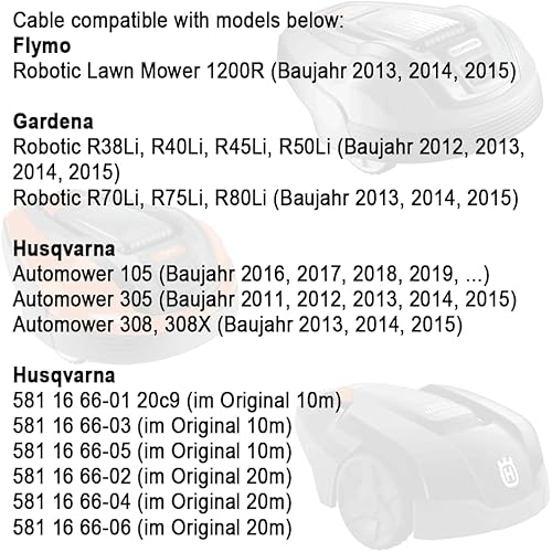Cavo di collegamento per stazione di ricarica trasformatore compatibile con robot tosaerba Husqvarna Automower 305,308, 308X anno 2011-2015, Automower 105 anni 2016-2019, 3 m