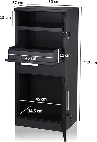 Cassetta per lettere Zelsius con scomparto per pacchi 'Neptun' | acciaio verniciato a polvere con elementi in acciaio inox | RAL7016 antracite | serratura antiritorno integrata