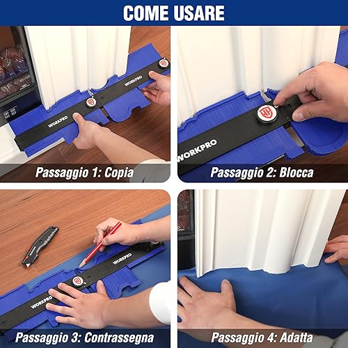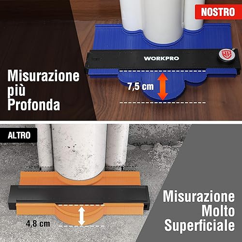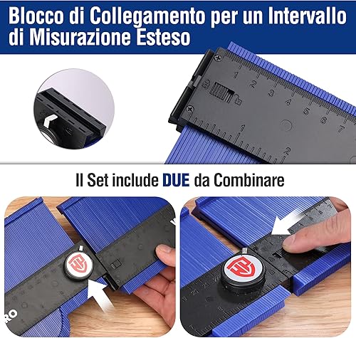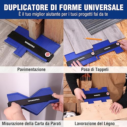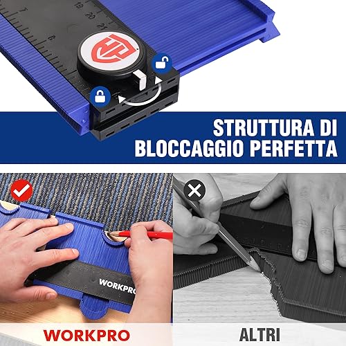 WORKPRO Calibro per contorni con blocco (25+25 cm), set da 2 pezzi, duplicatore di profili collegabile con sistema di bloccaggio, per copiare forme irregolari con precisione
