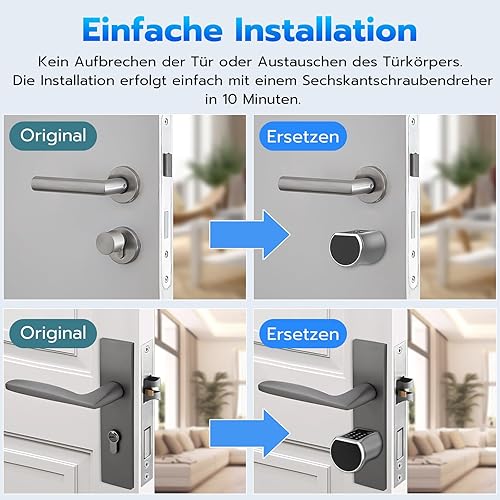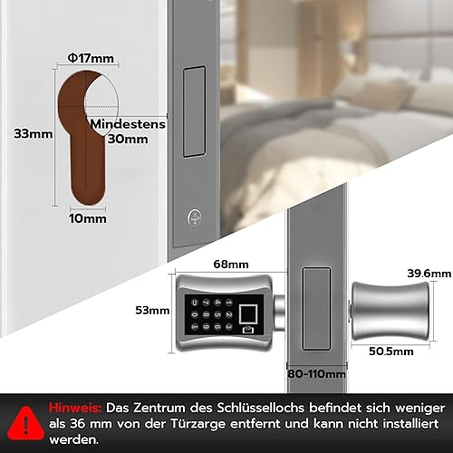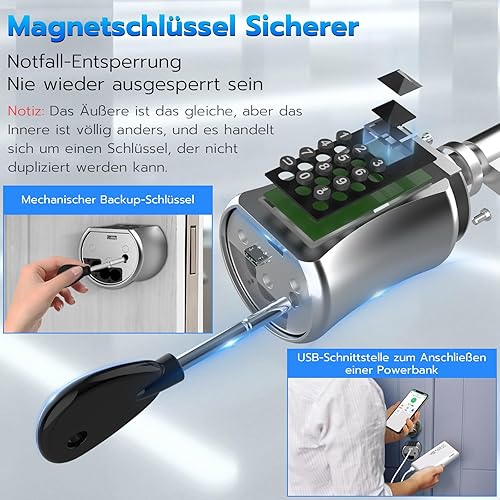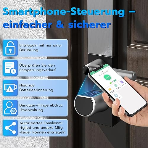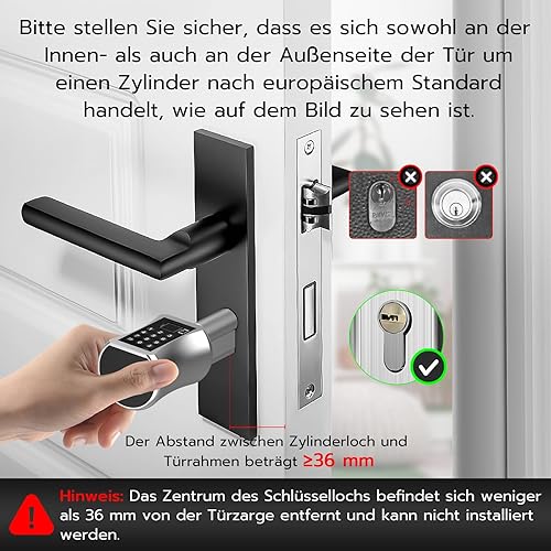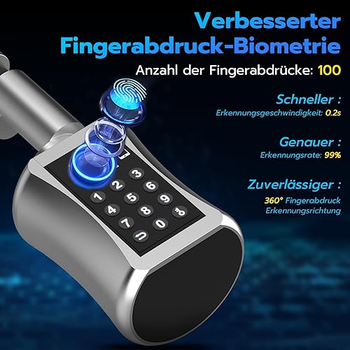 Serratura elettronica per porta, serratura a cilindro con impronta digitale, serratura a cilindro da 60 mm (30/40) con codice numerico e app Bluetooth, facile installazione
