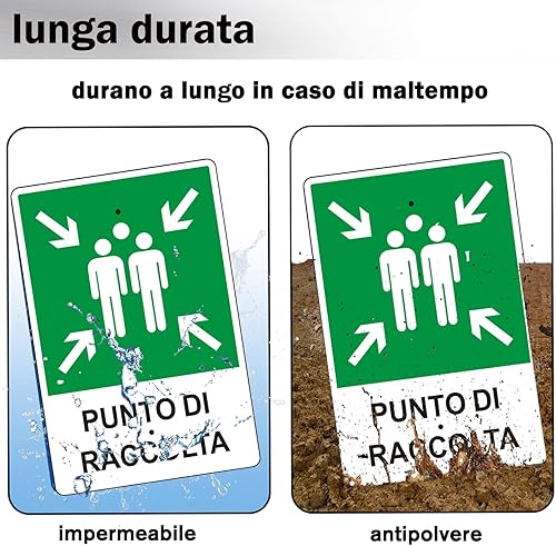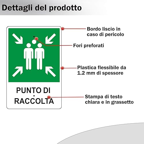 Cartello Punto di Raccolta con Staffa, 20X30CM Cartello di emergenza e sicurezza in alluminio Lunga Durata Fori pre-forati per facile installazione