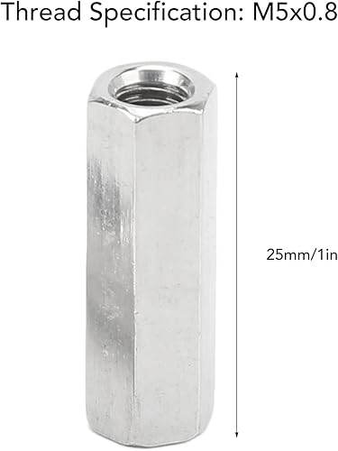 20 Dadi di Accoppiamento Esagonali, M5x0,8 L25mm Connettori per Barre Filettate in Acciaio Inossidabile Resistenti Alla Ruggine, Connettori per Dadi Esagonali di Accoppiamento con