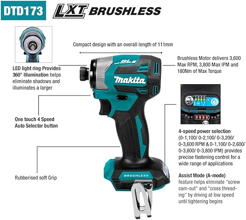 Makita DTD172Z 18V Li-ion LXT Brushless Impact Driver – Batterie e caricabatterie non inclusi