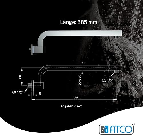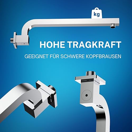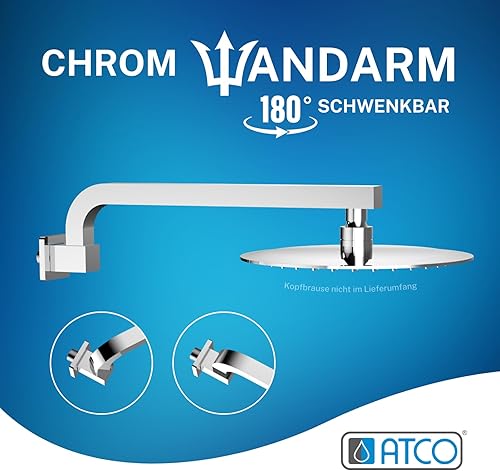 Braccio doccia CORNER girevole a 180°, soffione doccia a soffitto, per bagno, in ottone cromato, AG 1/2' x AG 1/2', lunghezza 425 mm
