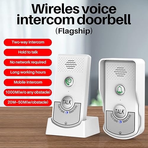 Campanello per Citofono Senza Fili, Campanello Elettronico per Campanello, 2 Vie 1 V 1 Campanello per Citofono Impermeabile Senza Fili con Indicatore Luminoso