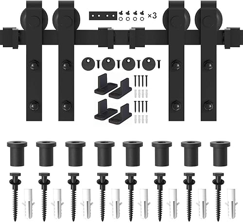 WINSOON Kit per doppia porta scorrevole da fienile, 305 cm, nero, resistente, kit hardware per porta scorrevole in acciaio al carbonio, gancio a forma di J