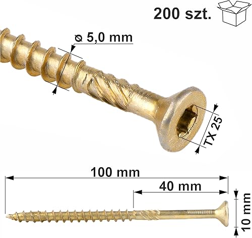 TORX - Viti per truciolare zincate con filettatura parziale, Ø 5 x 100 mm, confezione da 200