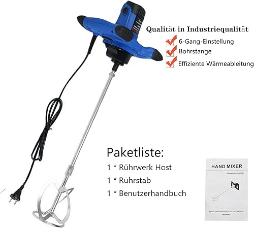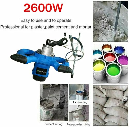 2600 W Handheld Paddle Mixer Concrete Mixer, portatile Concrete Cement Mixer regolabile 6 Speed Paint Mixer, 230 V Paddle Drill Mixer Stirring Tool for Mortar Grouts Paint Cement Plaster Plastering