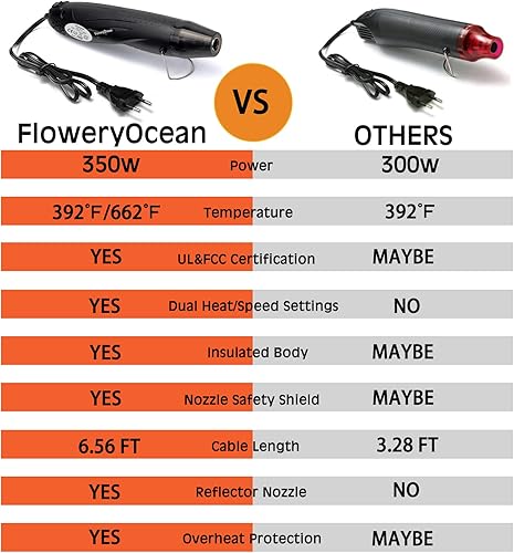 Mini pistola ad aria calda da 350 W, 2 impostazioni di temperatura 392°F/662°F, per goffratura artigianale, tubi termoretraibili, resina epossidica, ritiro riscaldato, asciugatura a