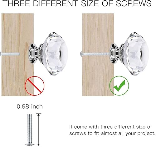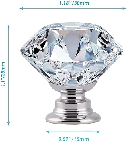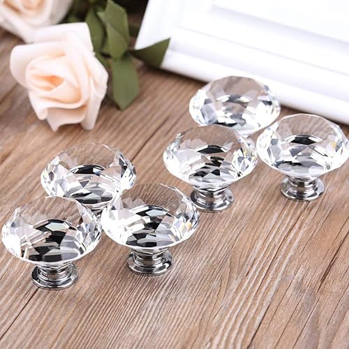 6 maniglie in cristallo, maniglie delle porte dell'armadio con cassetti in cristallo diamantato da 30 mm, maniglie delle porte in vetro della cucina per mobili, armadietti e comò per cucine e uffici