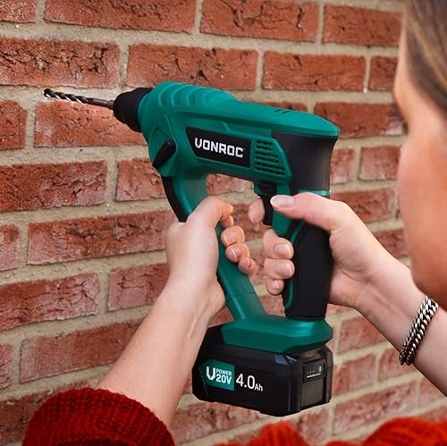 VONROC Martello perforatore VPOWER 20V 1.3 Joule - SDS plus. Incl. accessori e borsa degli attrezzi. Batteria e caricabatteria non inclusi