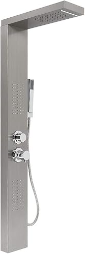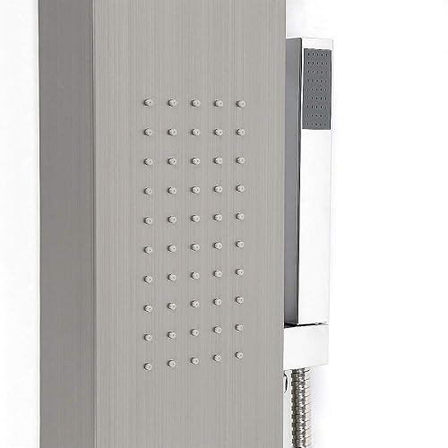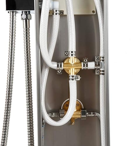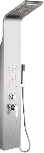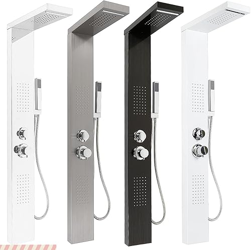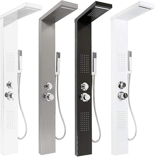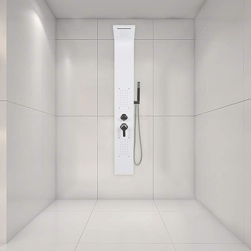 Colonna Doccia HUOLE In acciaio Inox 304 Spazzolato, Miscelatore Pannello Design Moderno Multifunzione Soffione Idromassaggio Doccia A Cascata Doccetta (15 * 47 * 130 cm bianco)