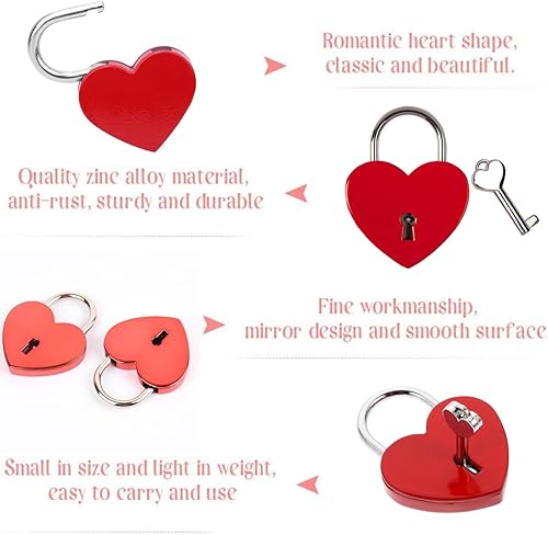 Serratura a Cuore Lucchetto,2 pezzi lucchetto dell'amore Lucchetto a forma di cuore con chiave Mini Lucchetto in Metallo per San Valentino,matrimonio,anniver