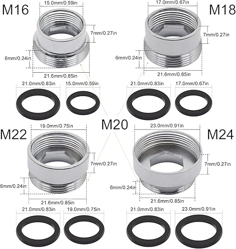 Supertool - Adattatore per depuratore e aeratore rubinetto, per risparmiare acqua, in metallo, femmina, adattatore rubinetto da 16-22 mm/18-22 mm/20-22 mm/24-22 mm (1 pezzo)