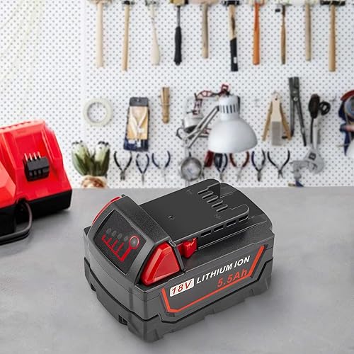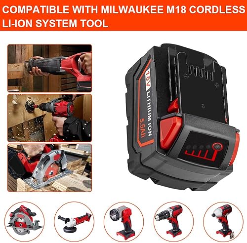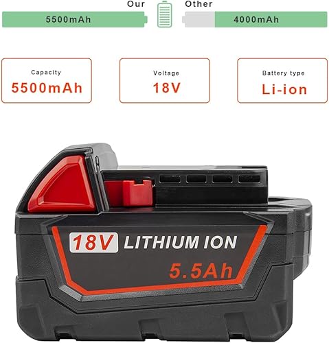 ASUNCELL Set di 2 18V 5.5Ah Batteria di Ricambio Per Milwaukee Strumenti, Compatibile con Milwaukee 18V Batteria 48-11-1860/48-11-1850/48-11-1840/48-11-1828/48-11-1820/48-11-1815
