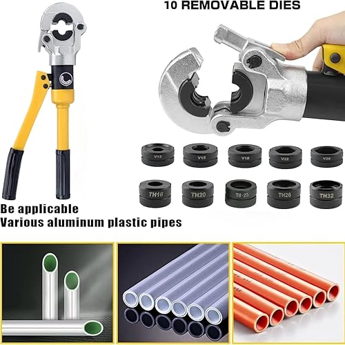 8T Utensili di crimpatura idraulici per tubi Pinza Idraulica Crimpare Set di Strumenti di Crimpatura Pinza a Pressione Idraulica per tubi in alluminio-plastica con Matrici