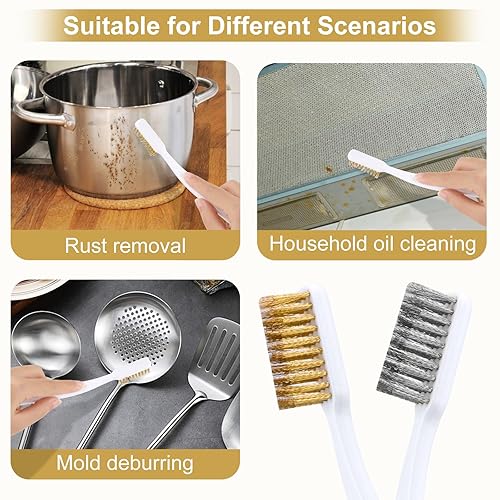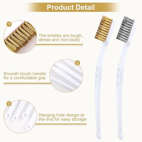 10Pcs Wire Brush, Mini Spazzole Metalliche, Spazzola Metallica Con Manico Bianca, Set di Spazzole Metalliche, per Pulire lo Sporco, la Ruggine delle Scorie di Saldatura, l'argento, Giallo