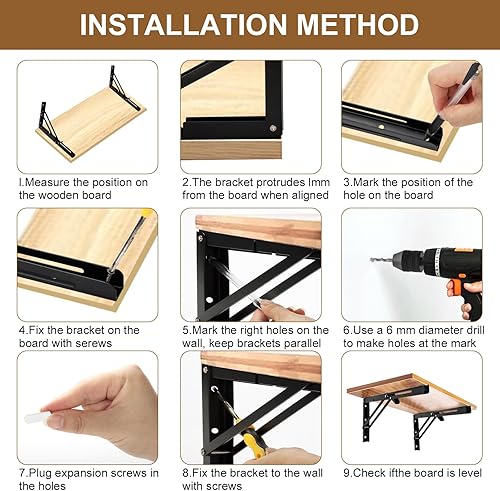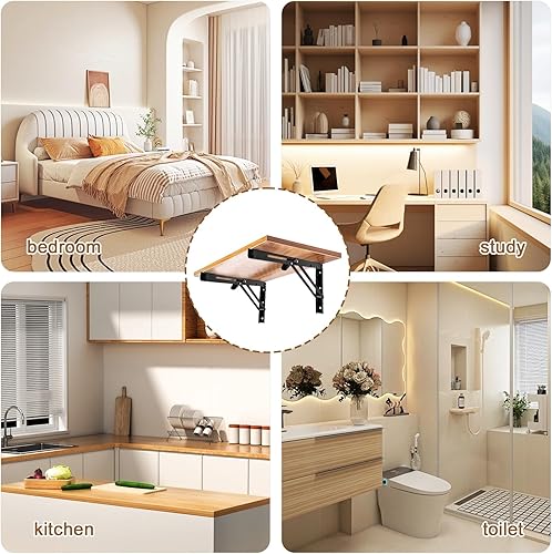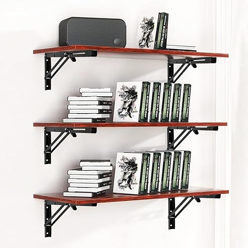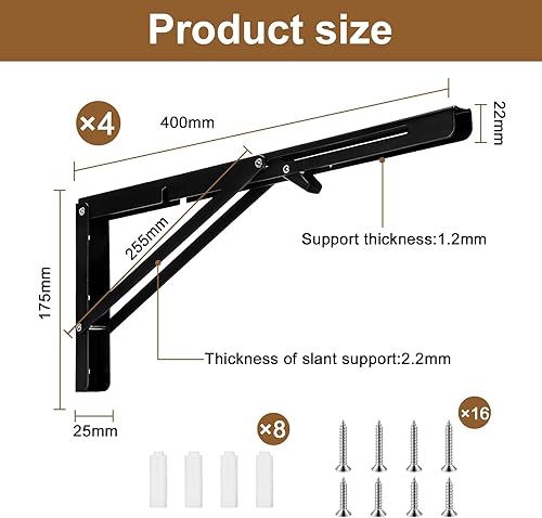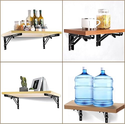 TEGOVE Staffe Pieghevoli per Mensole,4 Pezzi Staffe Per Mensole Pesanti,Mensola Pesanti Mensola Pieghevole,Supporto Tavolo Staffe,Supporto da Parete In Metallo Nero per Garage,Cucina