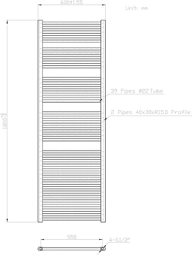 Radiatore termoarredo scaldasalviette cromato 180x60 interasse 55