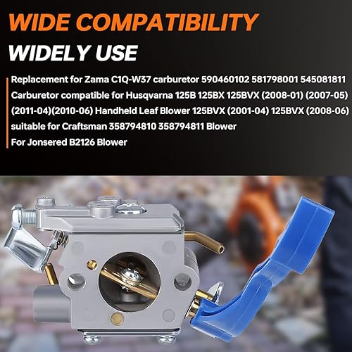 590460102 Carburatore per Husqvarna 125B 125BX 125BVX soffiatore portatile, per Jonsered B2126 BV2126 Sostituisce il carburatore per Zama C1Q-W37 con 581798001 545112101 Kit filtro aria