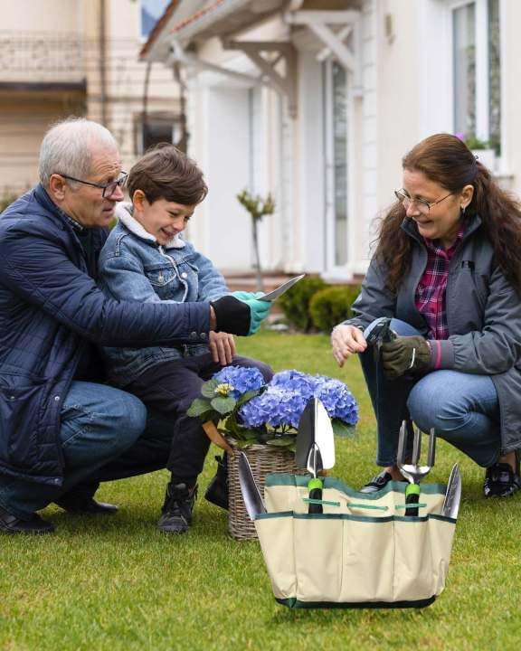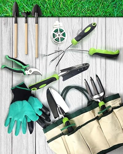 Attrezzi da Giardino con Supporti, 13 Attrezzi da Giardino in Acciaio Inox con Borsa per Attrezzi Resistente, Set di Attrezzi da Giardino per Uomini e Donne