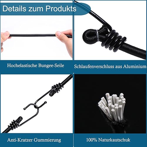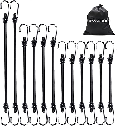 Set di 10 elastici con ganci, 30 cm, colore nero, per bagagli, per tipi di bagagli, per giardino, bicicletta, auto, carico (30 cm x 10 pezzi)