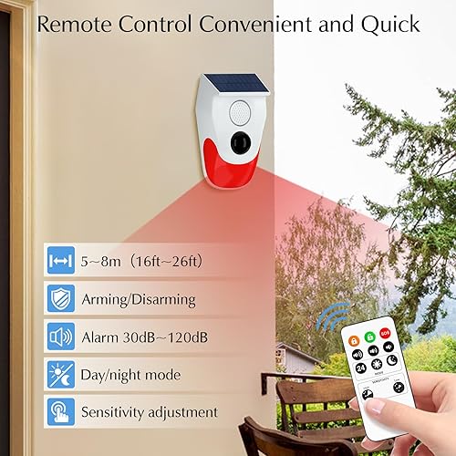 Sistemi di sicurezza domestica, allarme solare con sensore di movimento con monitoraggio remoto, allarme esterno resistente alle intemperie, 120 dB 24 ore 3 modalità per casa, fattoria,