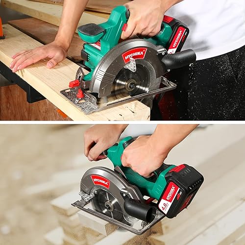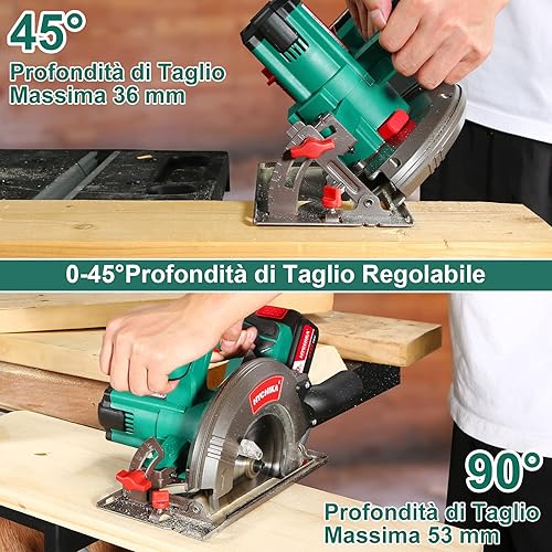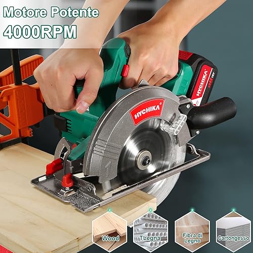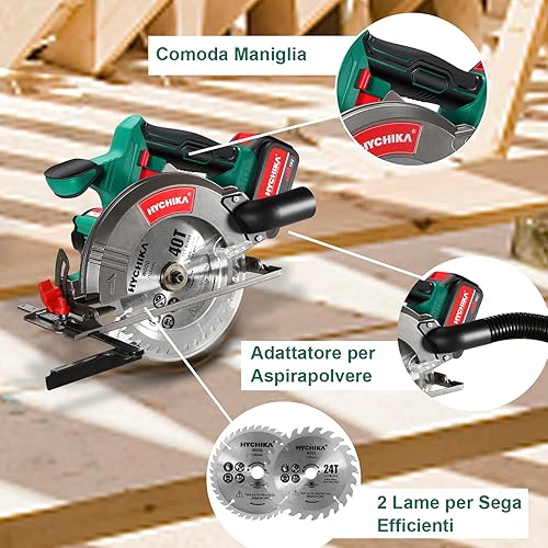 Sega circolare a batteria, HYCHIKA 18V con 2 lame da 165 mm, profondità di taglio massima 53 mm (90°)/36 mm (45°)