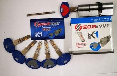 CILINDRO EUROPEO NICHELATO EVO K1 SECUREMME, SISTEMA ANTI-BUMP DUPLICAZIONE LIBERA MISURA 30-50