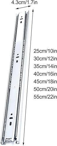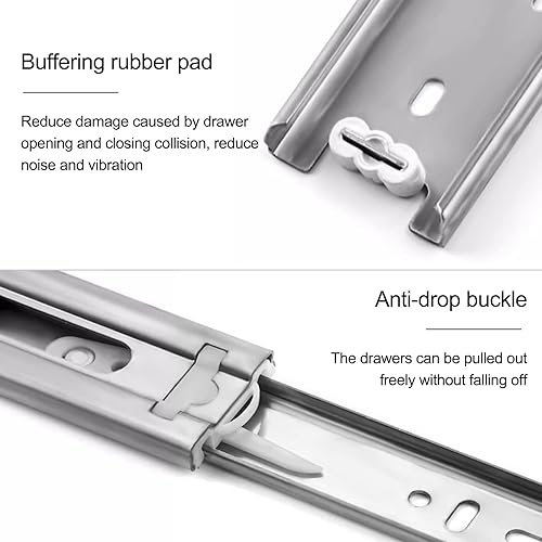BUETPOX 2 Pezzi Guide per Cassetti, Portata 45 kg, con Guide A Sfera, Montaggio Laterale, Metallo, Guide A Tre Sezioni Mute, per Cassetti di Mobili, Cassettiere O Armadi(40cm/16 Inches)