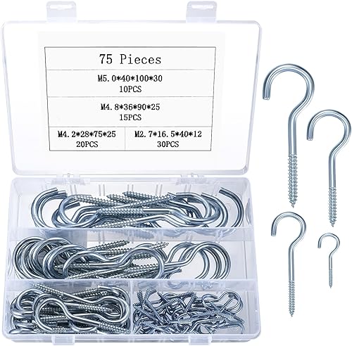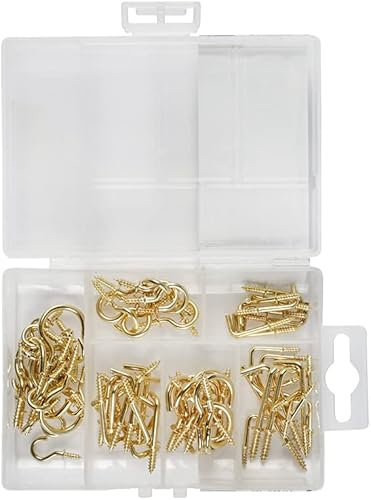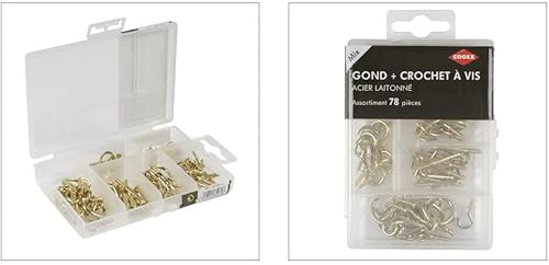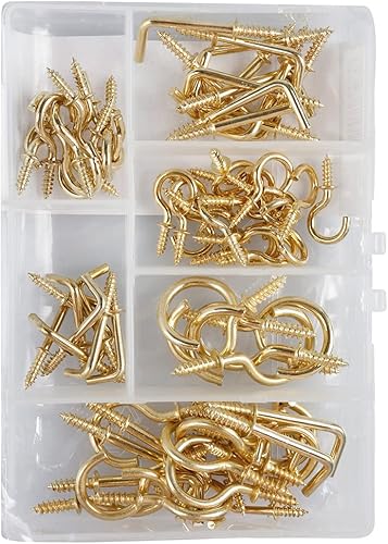 Gancio assortimento - Acciaio ottonato - 78 pezzi - Gancio e gond a vite - 78 ganci per viti di tipo L e ganci per viti - Assortimento ganci/fissaggi - Per appendere e fissare
