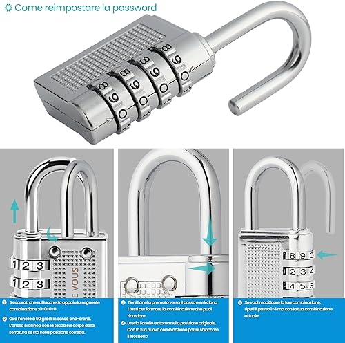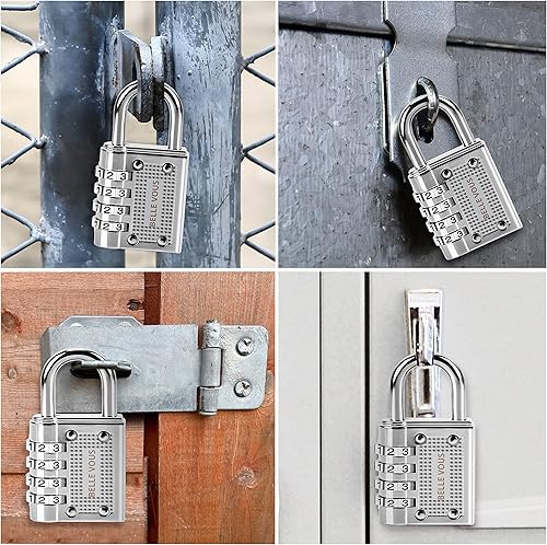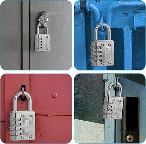 4 Lucchetto Combinazione Argento a 4 Cifre - Lucchetto Antiscasso 4,1 x 8 x 1,4 cm - Lucchetto Sicurezza Resistente all’Acqua per Lucchetto Moto, Lucchetto Serranda e Lucchetto Armadietto