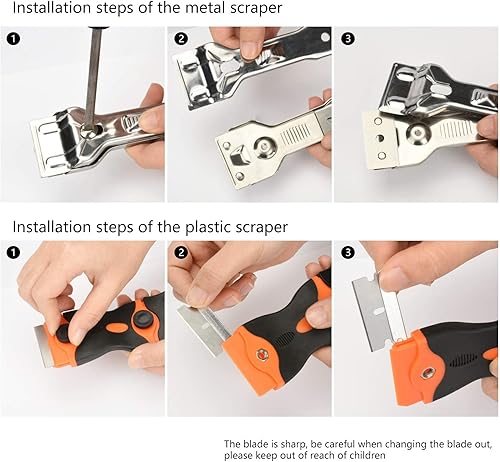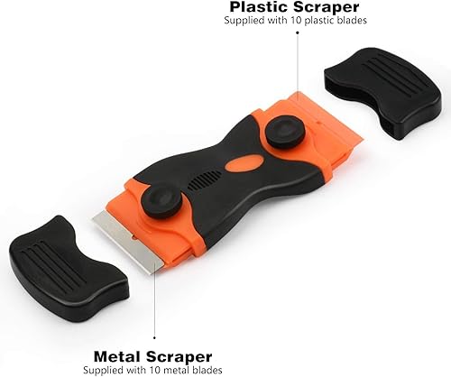 Set di 2 raschietti, raschietto per rimuovere etichette adesive per rimuovere la vernice, rimuovere la decalcomania con tappo di sicurezza