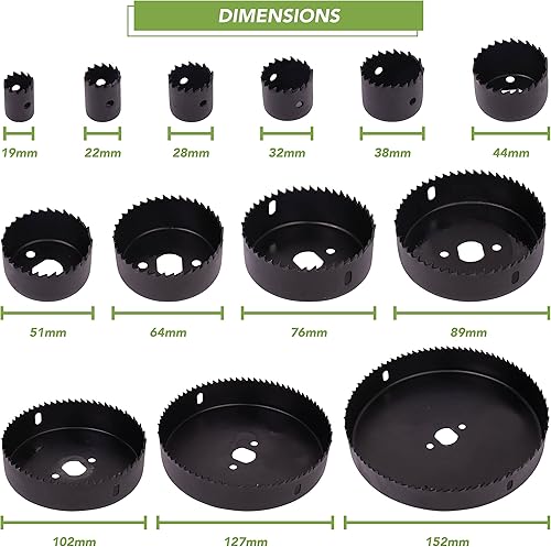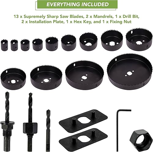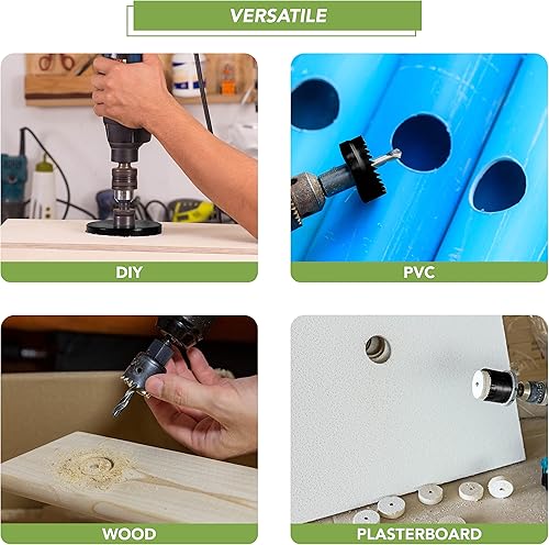 BLOSTM Sega a Tazza per Legno e PVC - 21PCS Set di Seghe a Tazza 19mm a 152mm con 2 Punte a Forare, 2 Mandrini, Piatto di Installazione, Chiave Esagonale e Custodia Compatta