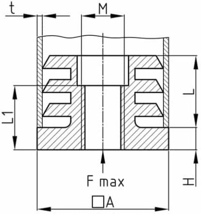 8 tappi filettati di regolazione, tappi per piedini, presa a incasso per tubi quadrati da 35 x 35 mm, con filettatura interna M8, carico per pareti di spessore 1,5-2 mm