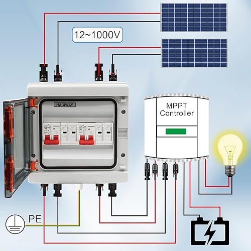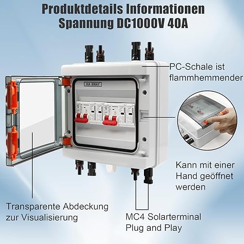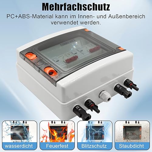 Protezione da Sovratensione PV DC, 2 In 2 Interruttore di Separazione, Protezione da Fulmini, Fulmini 2 Stringhe 1000V DC 20-40KA Scatola Connessione Generatore Connessione Solare IP65